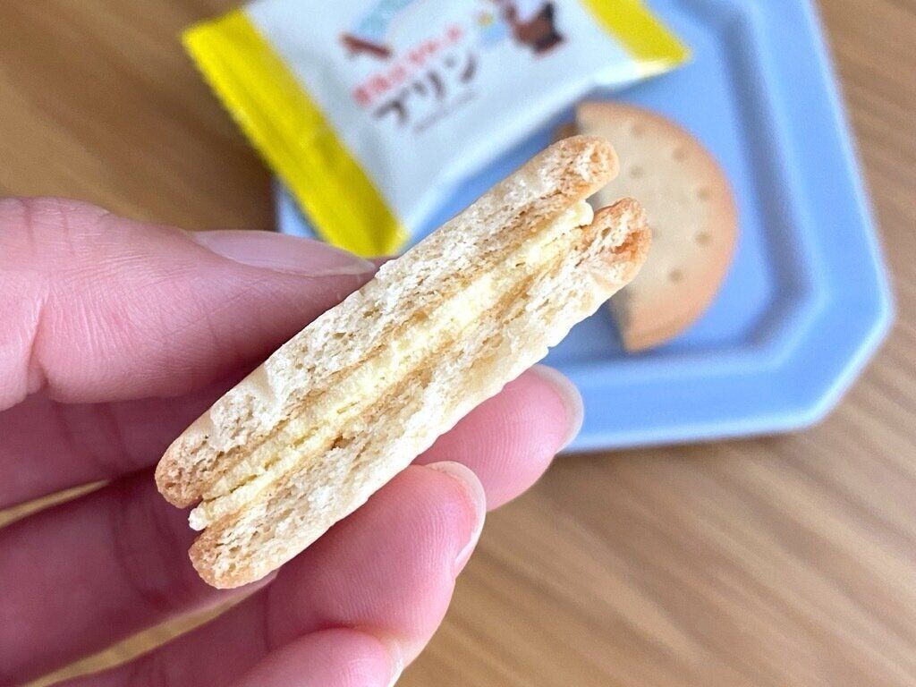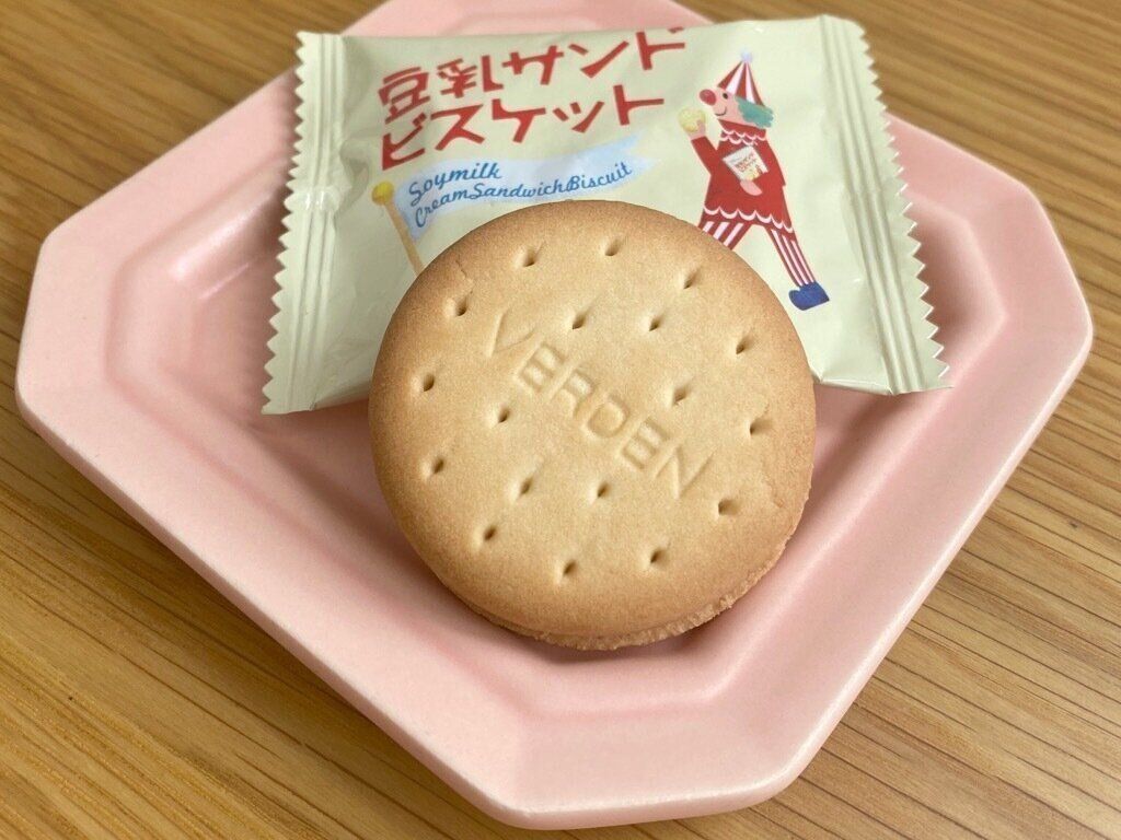 サンドされた豆乳クリームはなめらかな舌触りで、ビスケット同様やさしい甘さ。