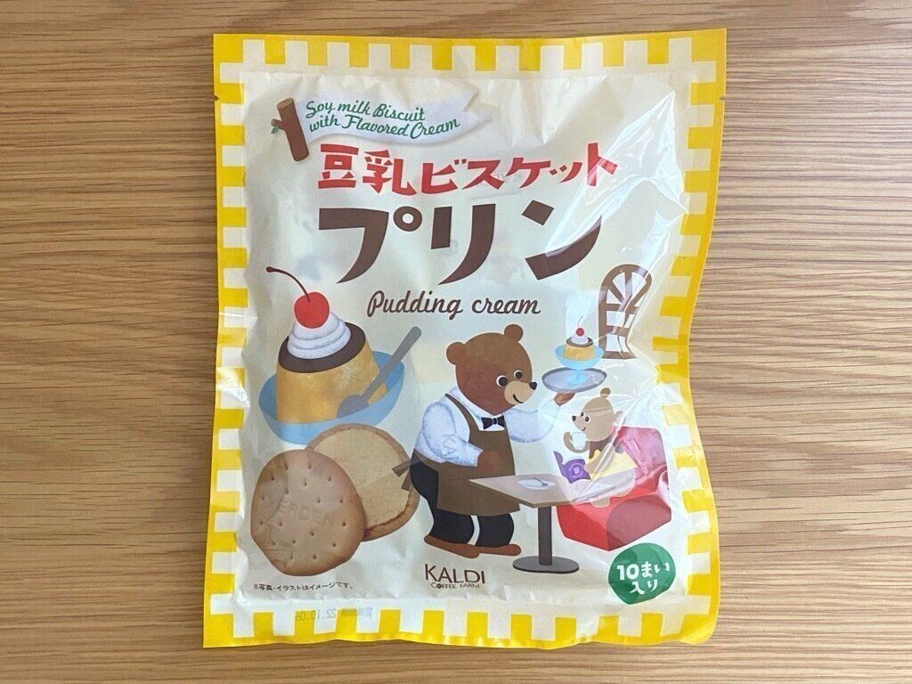 豆乳入りのサクサクビスケットでプリン風味のクリームをサンドした、カルディオリジナルのビスケットです。
