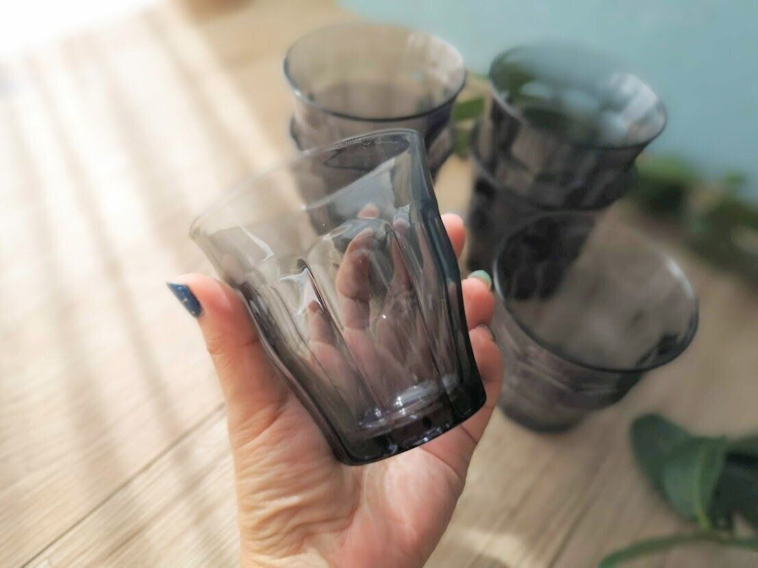 透明感のあるグレーのグラスで、とてもシックな印象です。