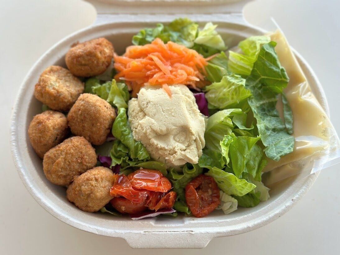 以前から販売のあった、ファラフェルサラダがフムスが加わり、ファラフェル&フムスサラダになりました!
