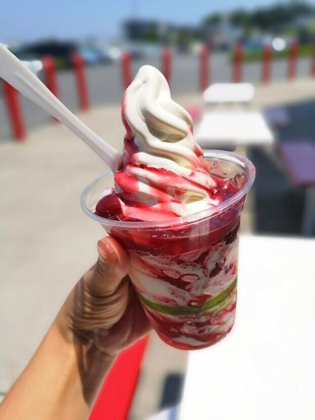 さわやかな甘酸っぱい苺の味。酸味が強めのイチゴ味なので、ミルクソフトとのミックスが断然オススメ!イチゴミルク味を楽しめるのでぜひお試しを!