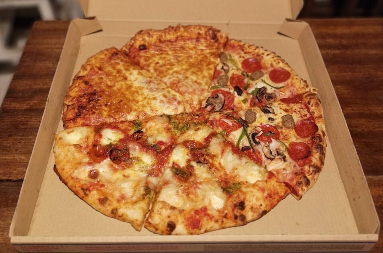 基本的には、チーズ、マルゲリータ、ペパロニ、コンボ、この4種類から3種類がターンしながら並んでいますが、ときどき、期間限定の味も登場します。