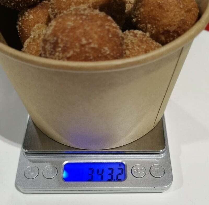 バケツ型の容器に4cmほどのドーナツボールが17個入った商品で