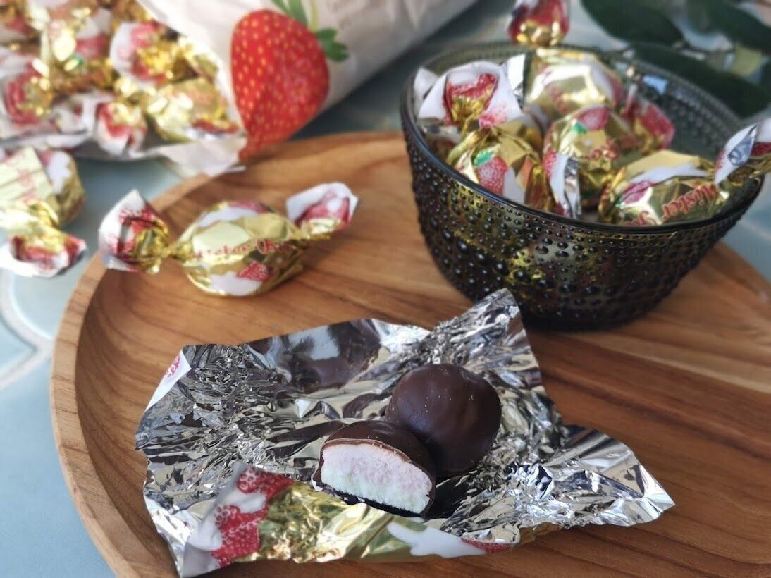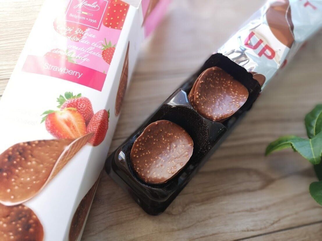 ミルクとストロベリーのアイシングを、薄いチョコレートでコーティングしたような商品で、内側のミルクとストロベリーがシャリシャリとした食感があります。
