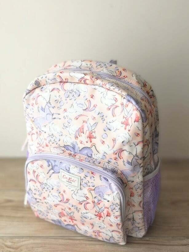 写真は、キャス・キッドソンのバックパックで、大きさは横27cm、縦34cmほど。幼稚園生や、小学校低学年にピッタリの大きさです。価格はびっくり4,800円!