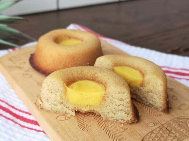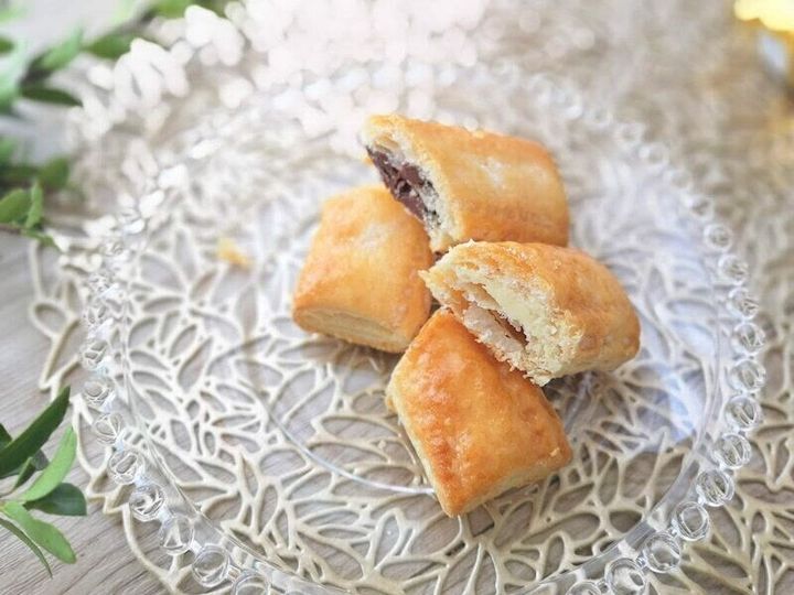 ジュッワンっとアーモンド香るフィナンシェにも似た焼き菓子で、中央にはカスタードクリーム風のチョコフィリングが入っています。