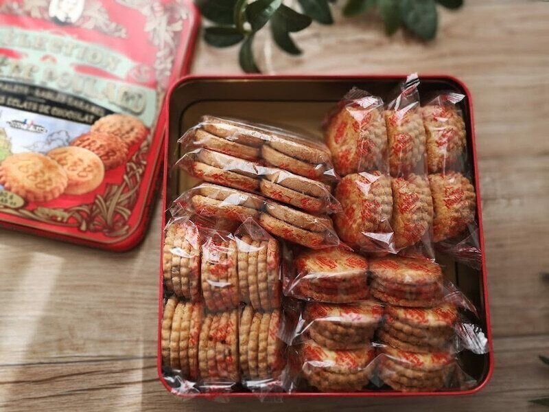 ピュアバター、ショートブレッド、チョコチップ、キャラメルの4種類のクッキーが入っています。