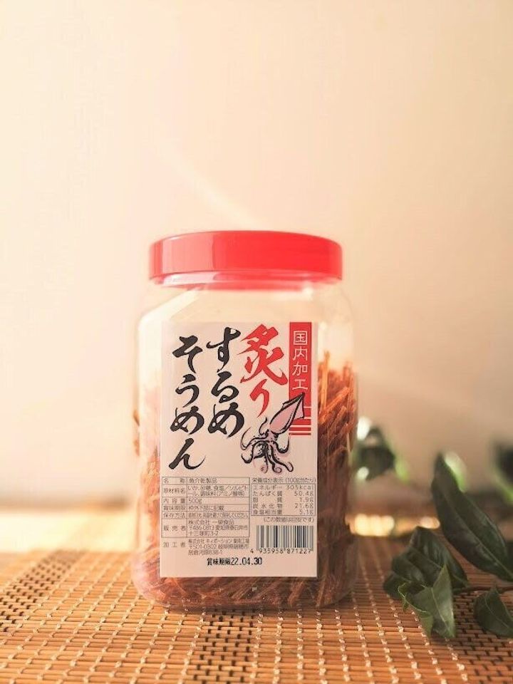 一見するとスルメそうめんに1,798円って高い!と思ってしまうかもしれませんが、大抵100円ほどで販売されている商品は15gほどしか入っていませんので、そう思うとかなりコスパよしの商品です。