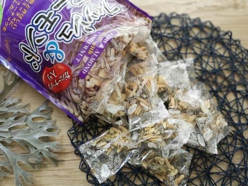 中は小分けになっていて、ナッツと小魚がセットになっています。