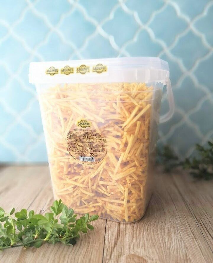 細く食べやすい軽い食感のポテトスナックは、サクサクおいしくてほんのり塩味。