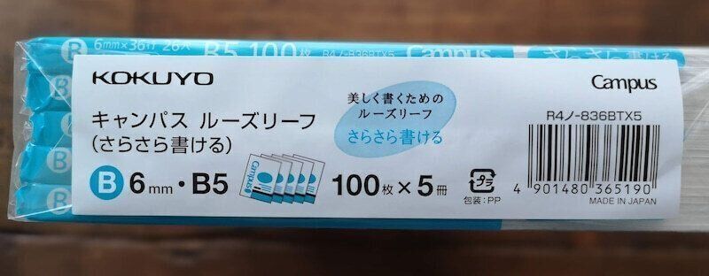 こちらも、キャンパスの製品で、100枚組1冊の商品を5冊セット、500枚での販売です。