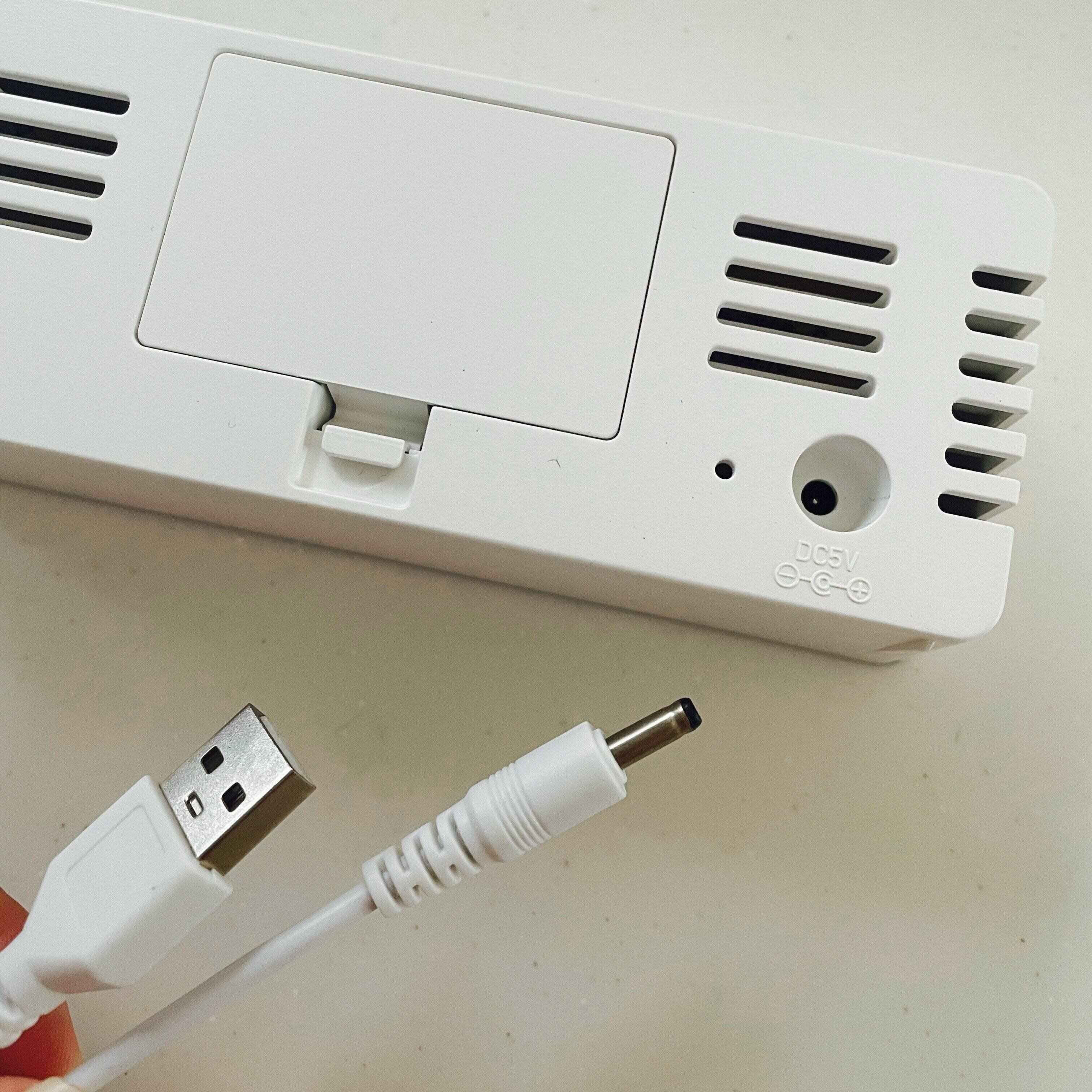 本体裏側には単4乾電池3本を入れる部分とUSBケーブルから電源を取るジャックがあります。