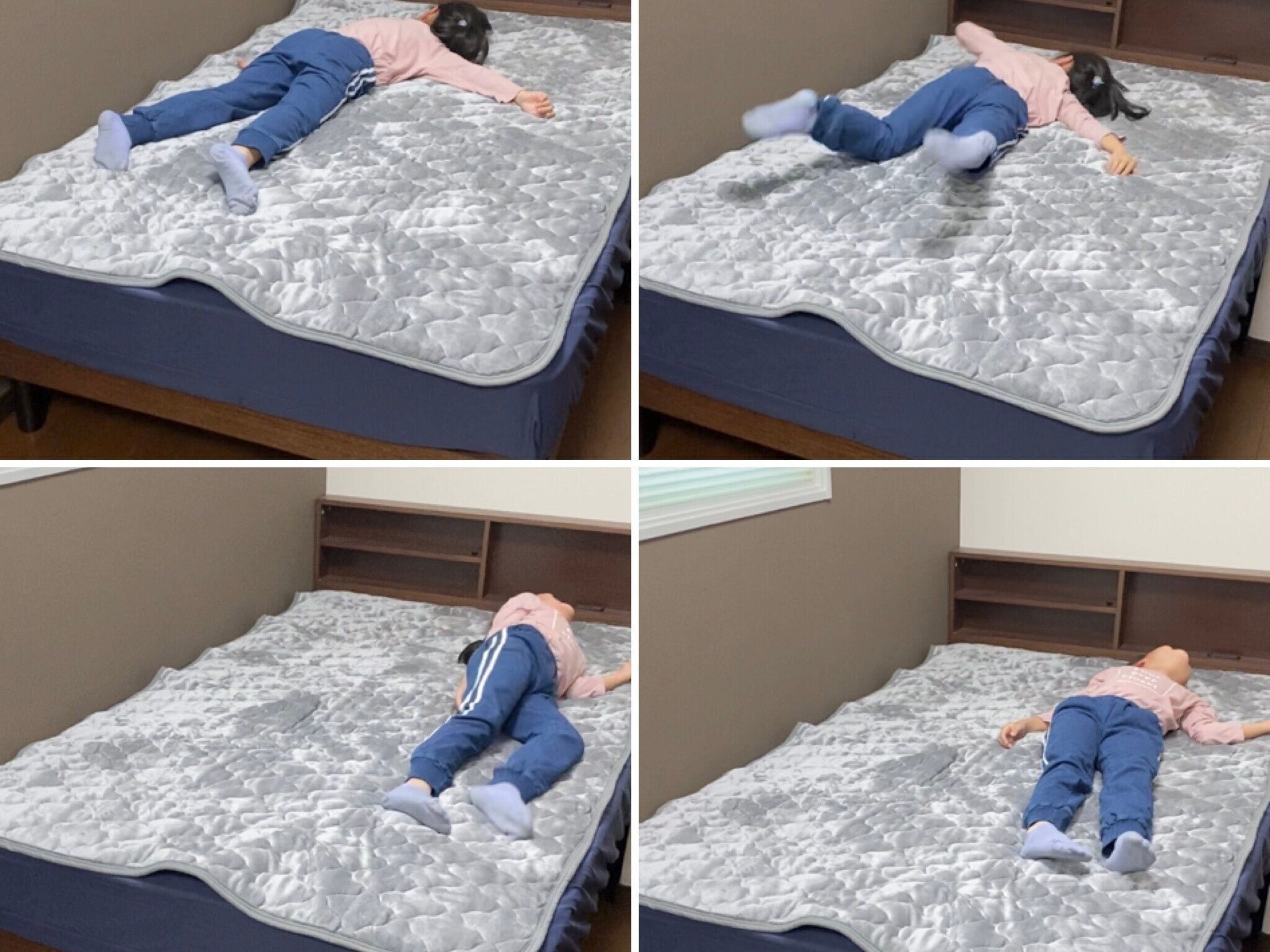 寝ているときも活発な、わが家の小学2年生に協力してもらいました。