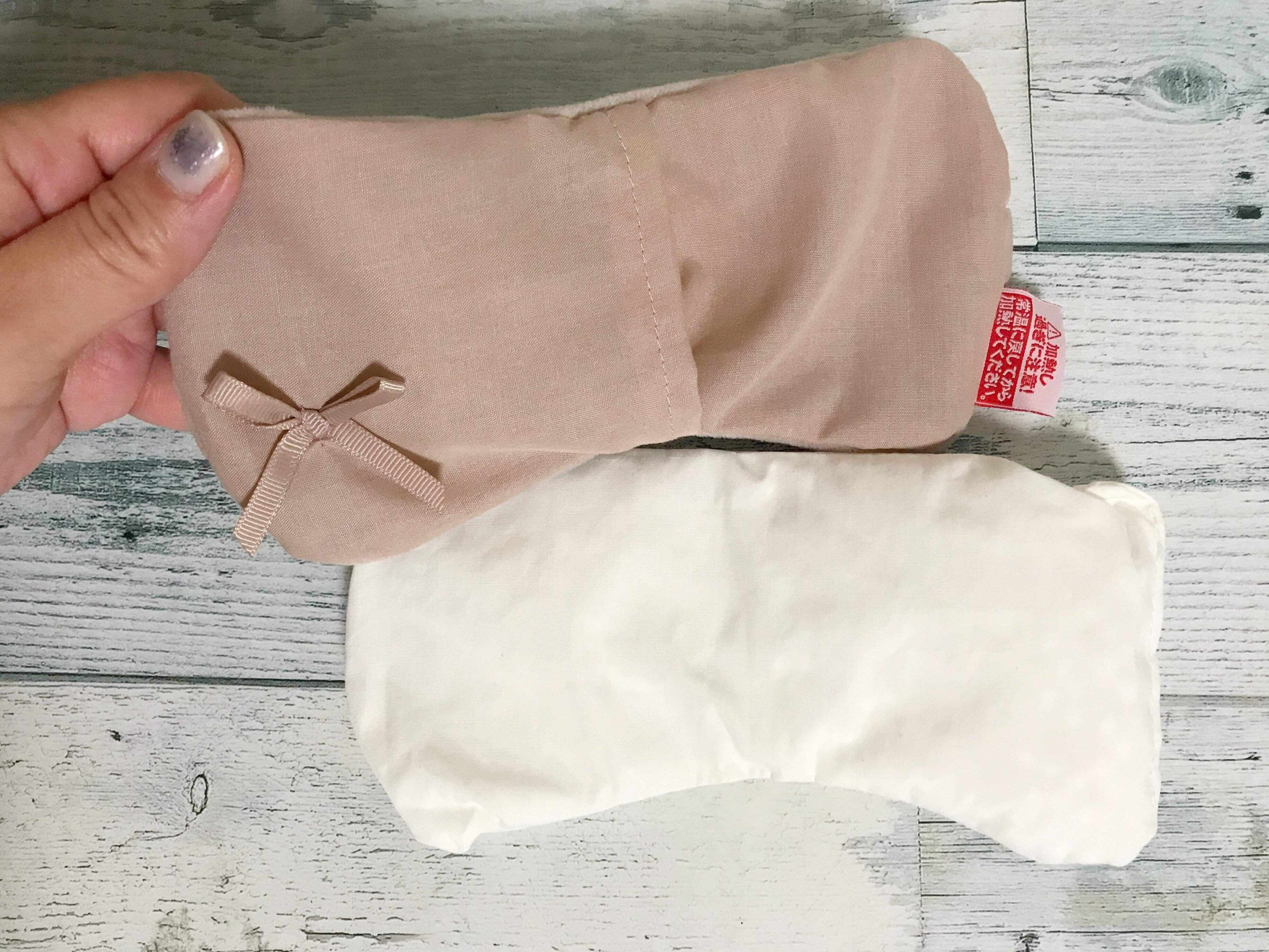 「レンジであったかアイマスク」(330円)。その名の通り、電子レンジで温めて使うホットアイマスクなのですが、繰り返し使えるのでコスパも良いですよね。