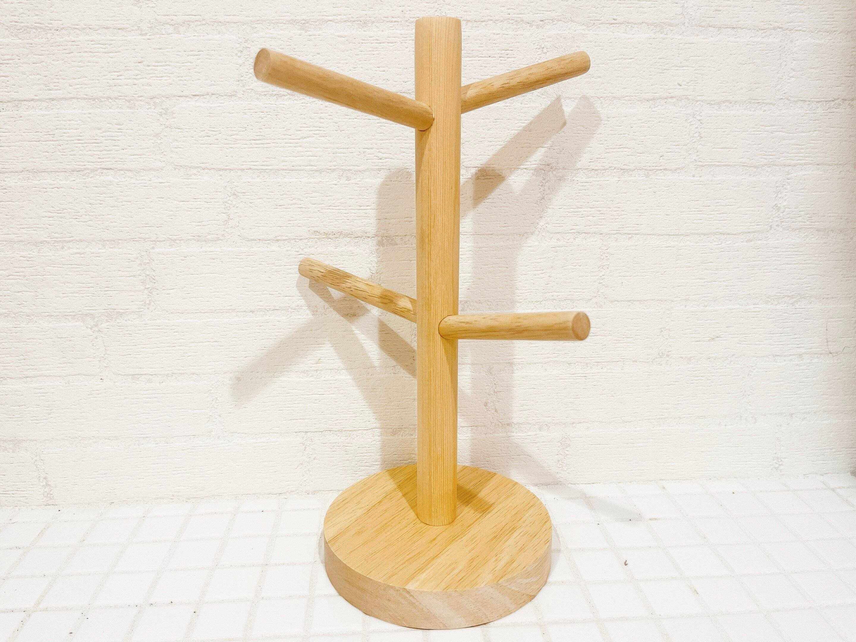 ナチュラルな木目とフォルムも可愛くて、おうちカフェ空間作りにもピッタリ。4個のマグカップが掛けられます。