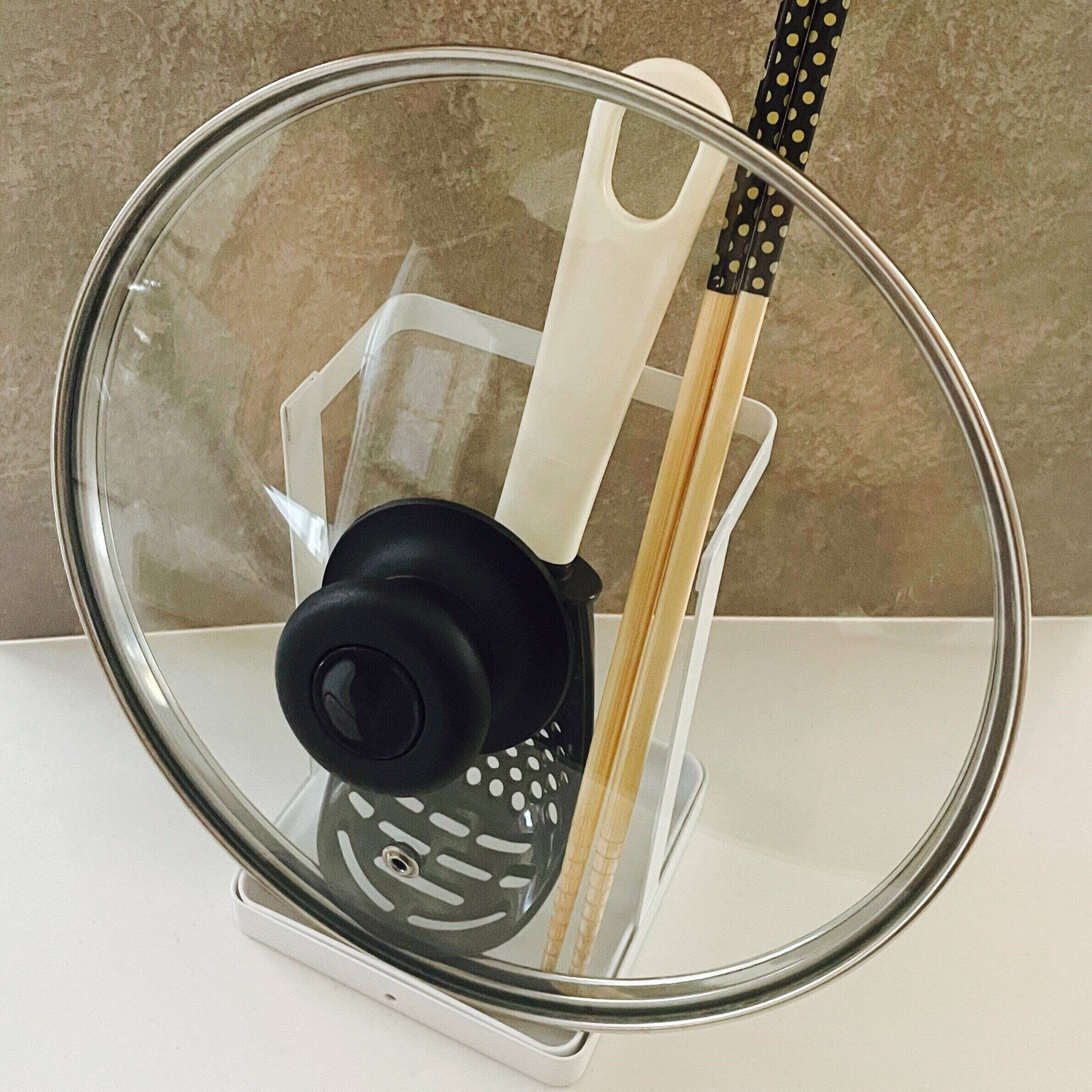 お玉と菜箸の収納スタンドですが、なんとなんと!お鍋の蓋まで置くことができるんです。