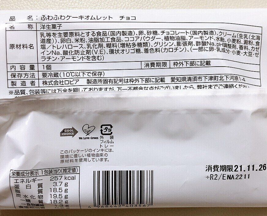 ファミリーマート 「ふわふわケーキオムレット チョコ」