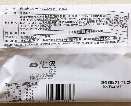 アースカラーのおしゃれなパッケージの新作オムレット。チョコとチーズが同時発売され、力の入った商品です。今回はチョコを食べてみました。