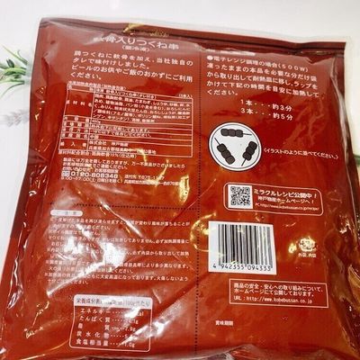 原材料名:鶏肉、鶏肉軟骨、たまねぎ、しょうゆ、砂糖、卵、水あめ、植物油脂、パン粉(小麦を含む)、おろしにんにく、みりん、粉末状大豆たん白、おろししょうが、醸造酢/調味料(アミノ酸等)、ポリリン酸Na、増粘剤(加工デンプン、キサンタン)、酒精、膨張剤