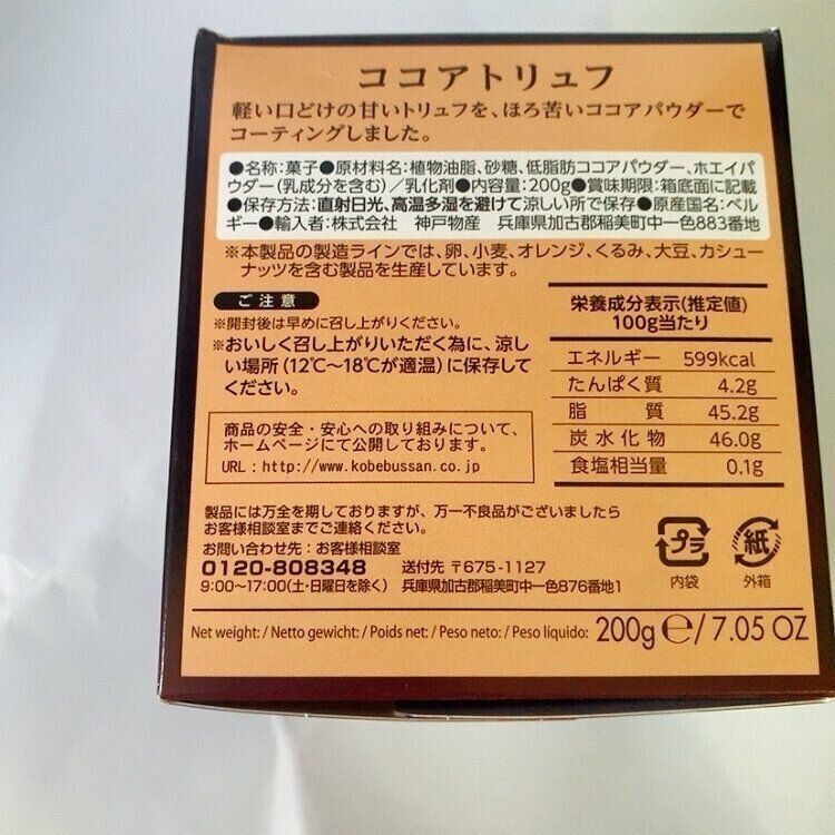 原材料名:植物油脂。砂糖、低脂肪ココアパウダー、ホエイパウダー(乳成分を含む)/乳化剤