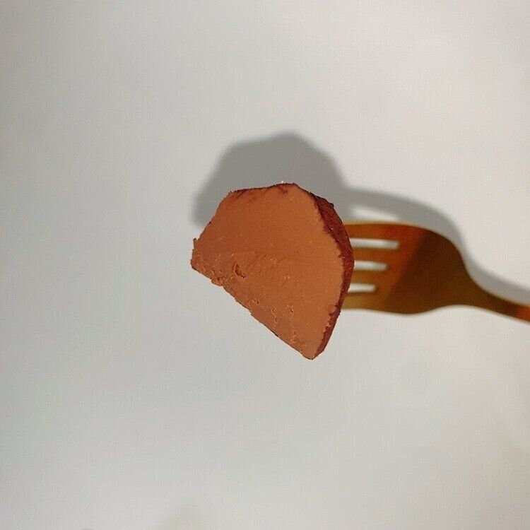 トリュフには、ココアパウダーがしっかりまとわれています。口に入れるとココアのほろ苦さを最初に感じますが、チョコレートがゆっくり溶けていきます。