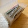 その中に、無印良品のリフィールクリアポケット(15枚入り250円、100枚入り1,190円)と、リフィールカードポケット(10枚入り250円)を入れています。