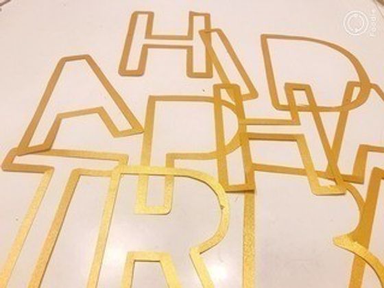 ①パソコンで印刷した文字を、転写シートを使って画用紙に写しカッターで切る