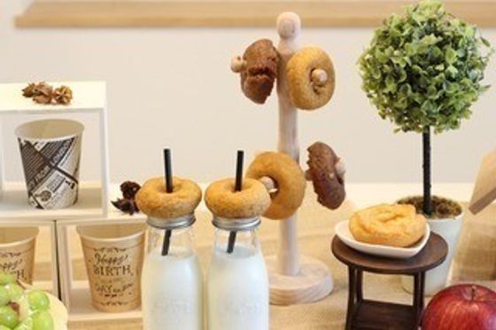 デスク上の飾りには、今インスタでも話題の、ドリンクの上にドーナツをのせたものを◎またコップスタンドにドーナツも新しいアイディアで可愛い☆