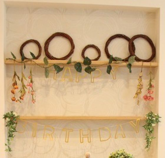 バースデーガーランドに、ダイソードライフラワーやリースで秋感をプラス☆