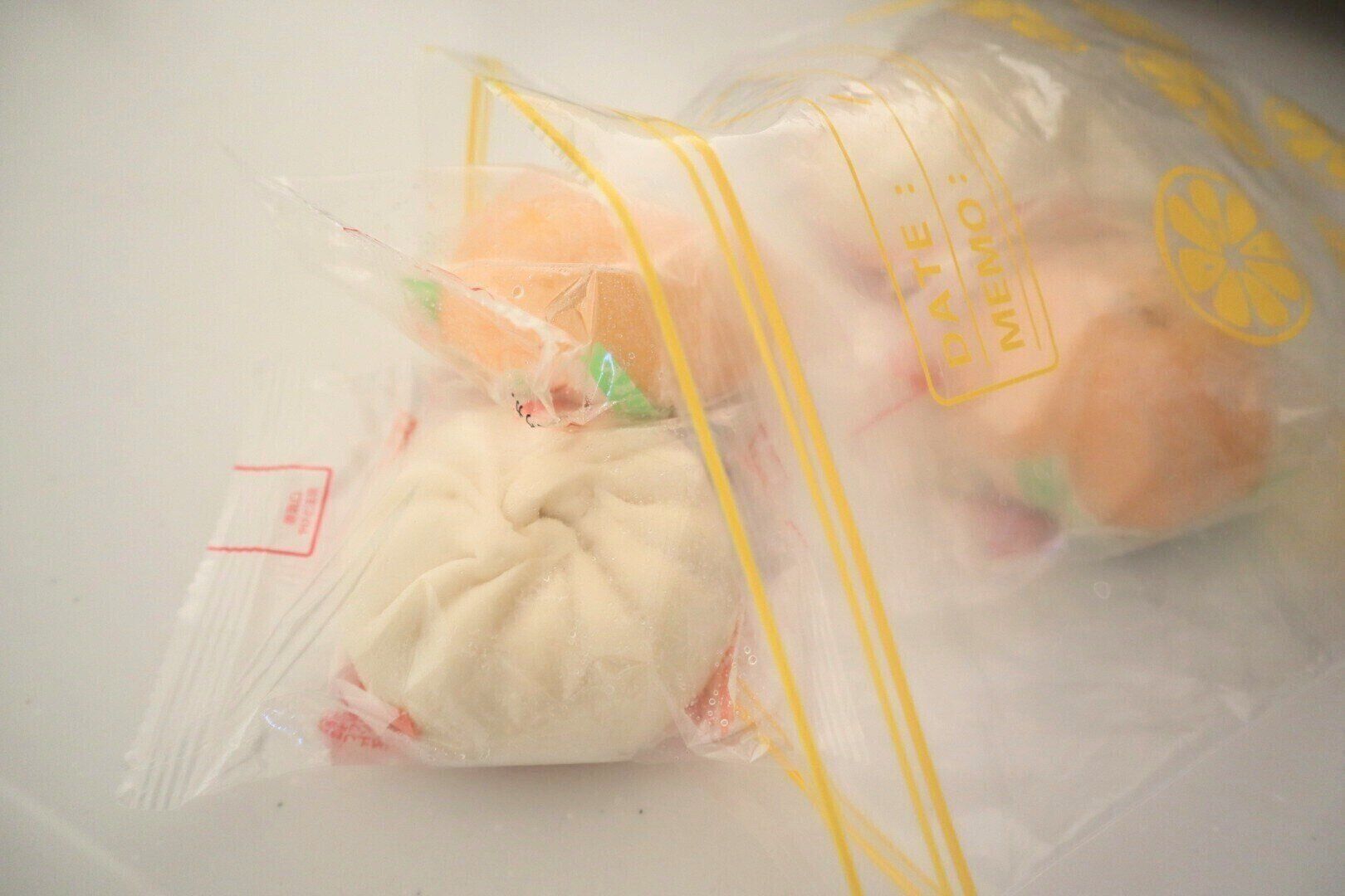 肉まんを冷凍する際も、ジッパー付きポリ袋にそのままポイポイ入れるだけなので、とってもラクチンです。