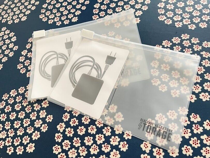 デジカメとビデオカメラのケーブルはよく似ているので、しっかり把握しておかないと迷ってしまいがちですが、ポーチごとに分けてスライダー部分にラベリングしておくと、把握しやすいですよ。