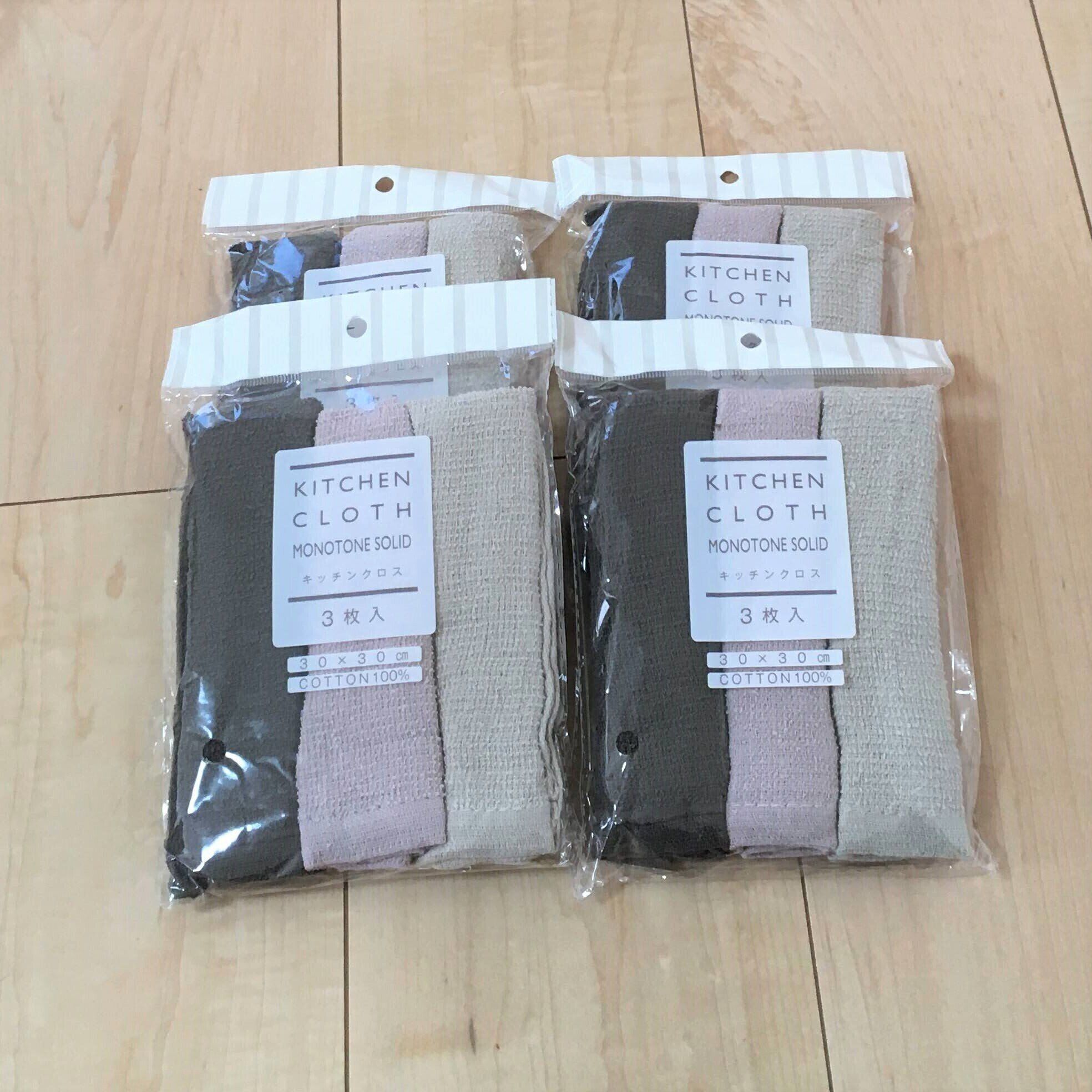 セリアの【キッチンクロス モノトーン無地】は3枚入りでとってもお得。