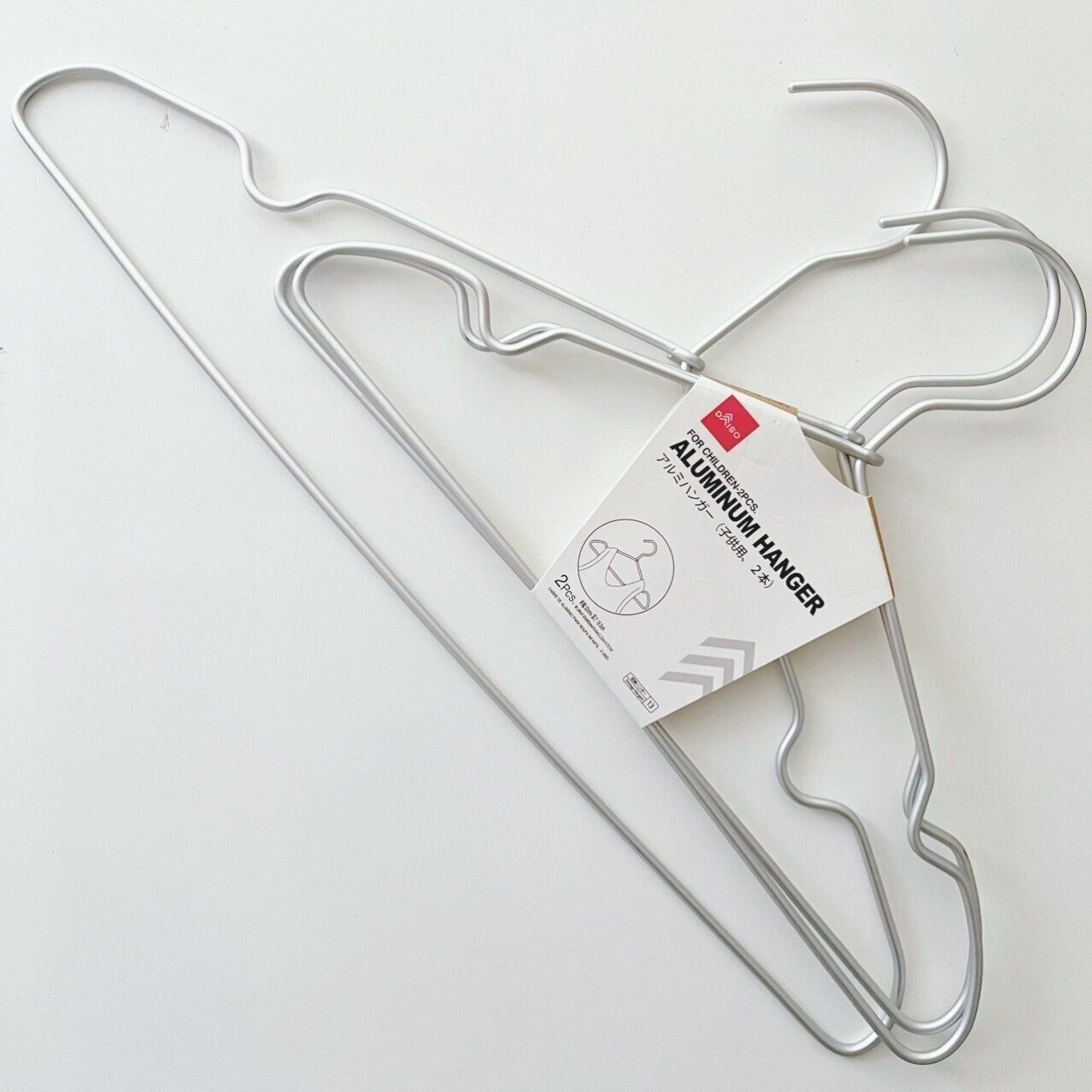 アルミハンガーはシリーズで色々な形が出ていますが、肩ひも部分が凹んでいる形には「子ども用」もあります。