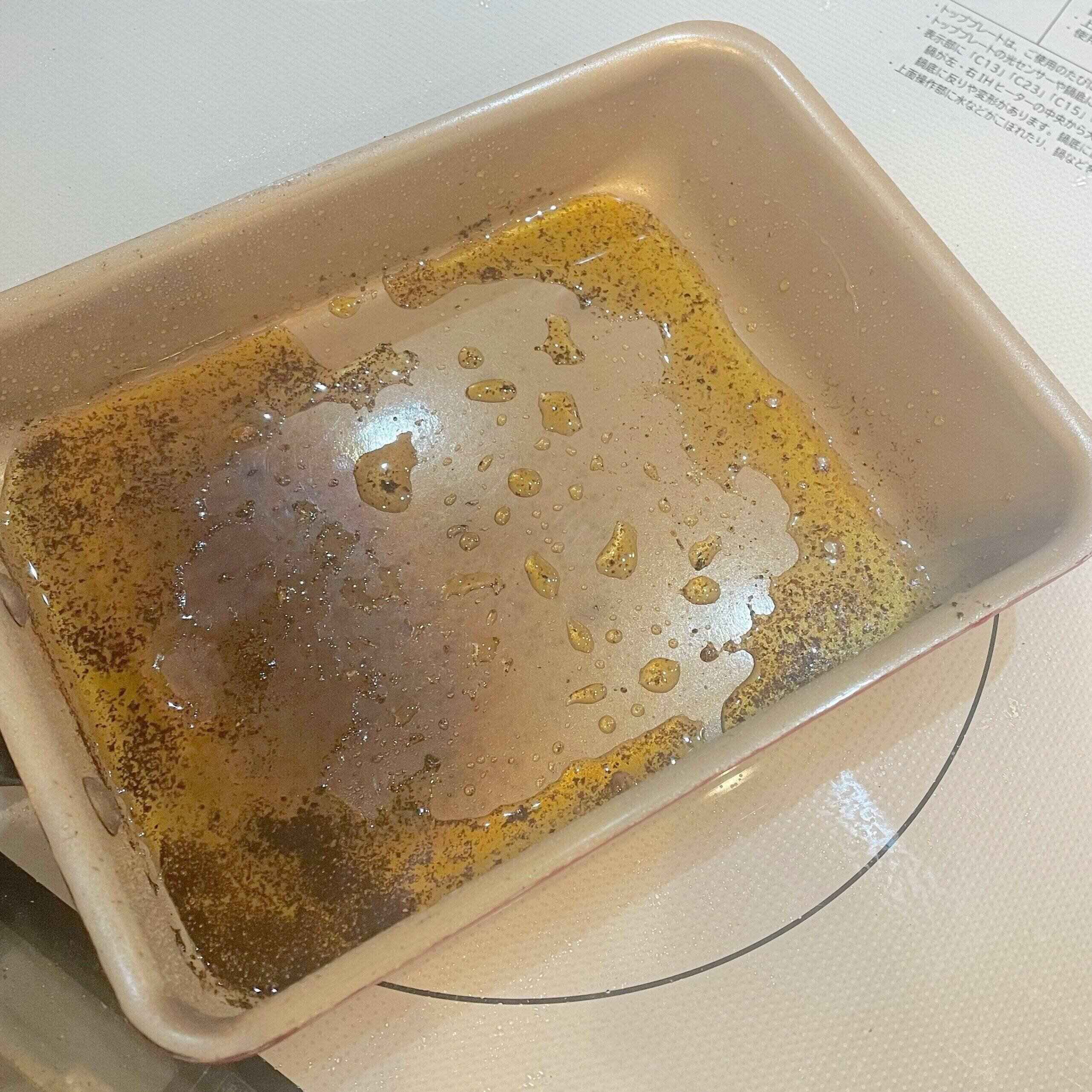 フライパンのギトギト油をすべて吸ってくれたので、油残りがなくこんなにキレイになりました!この状態なら洗い物もラクにできますね。
