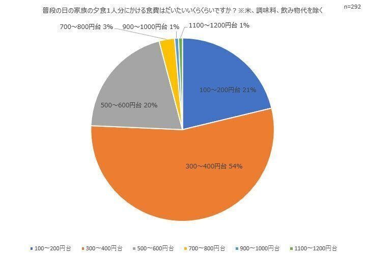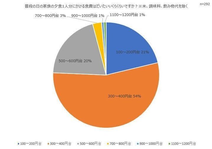 普段の日の夕食1人分にかけるだいたいの食費は、「300~400円台」と答えた人がもっとも多い結果となりました。
