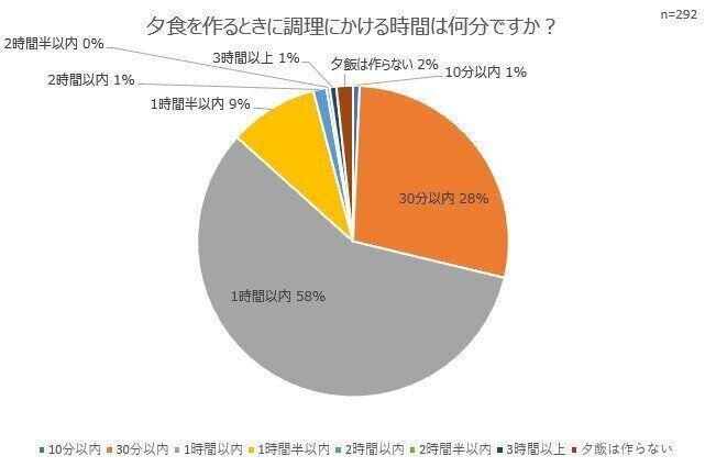 夕食の調理にかける時間は、30分以上1時間以内の人が全体の約6割を占めています。