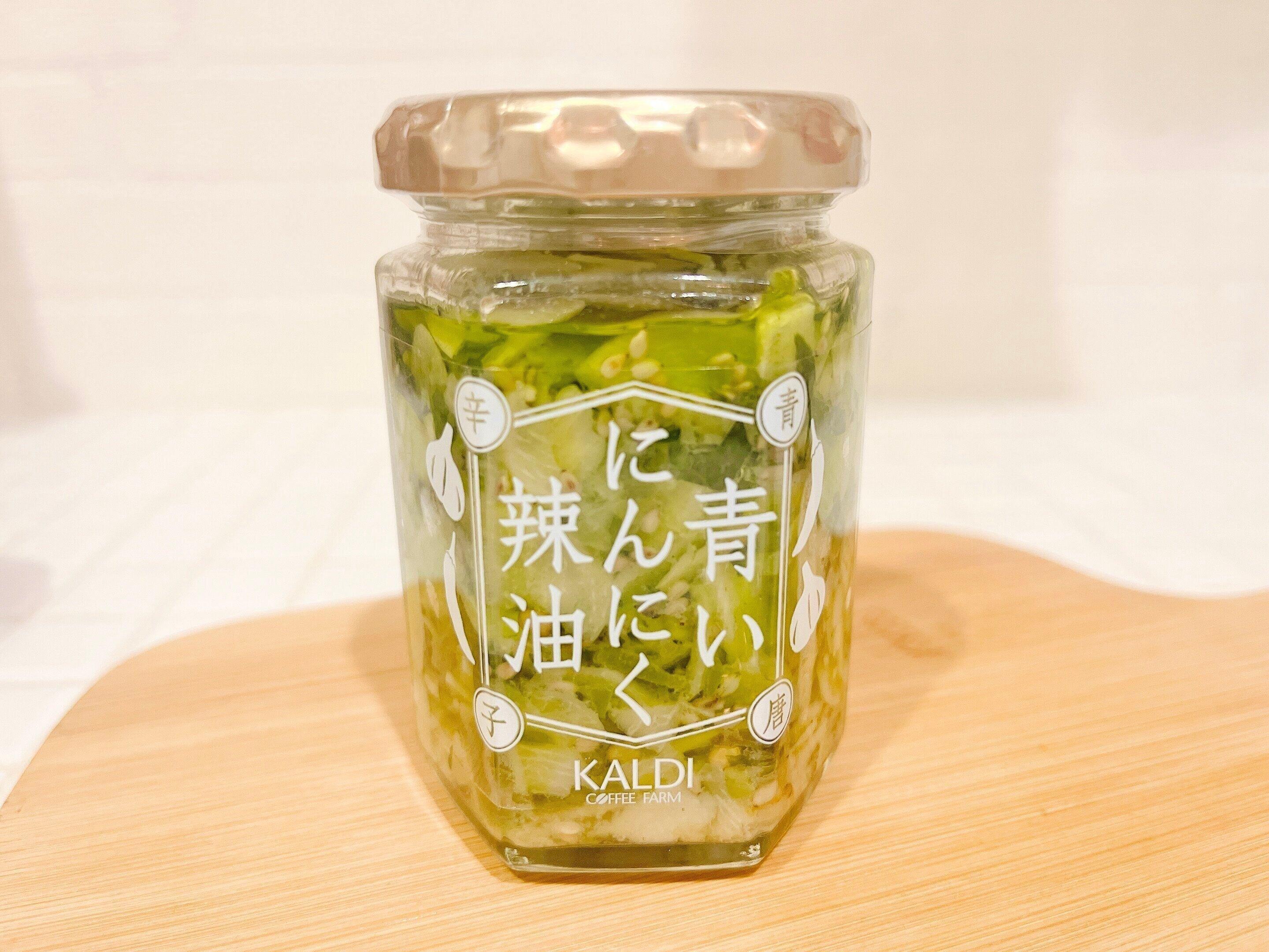 にんにく、青唐辛子、ごま、わさび菜などが絶妙に組み合わされ、どんな料理にも合う、とにかく万能な調味料!青唐辛子オイルに漬かっています。