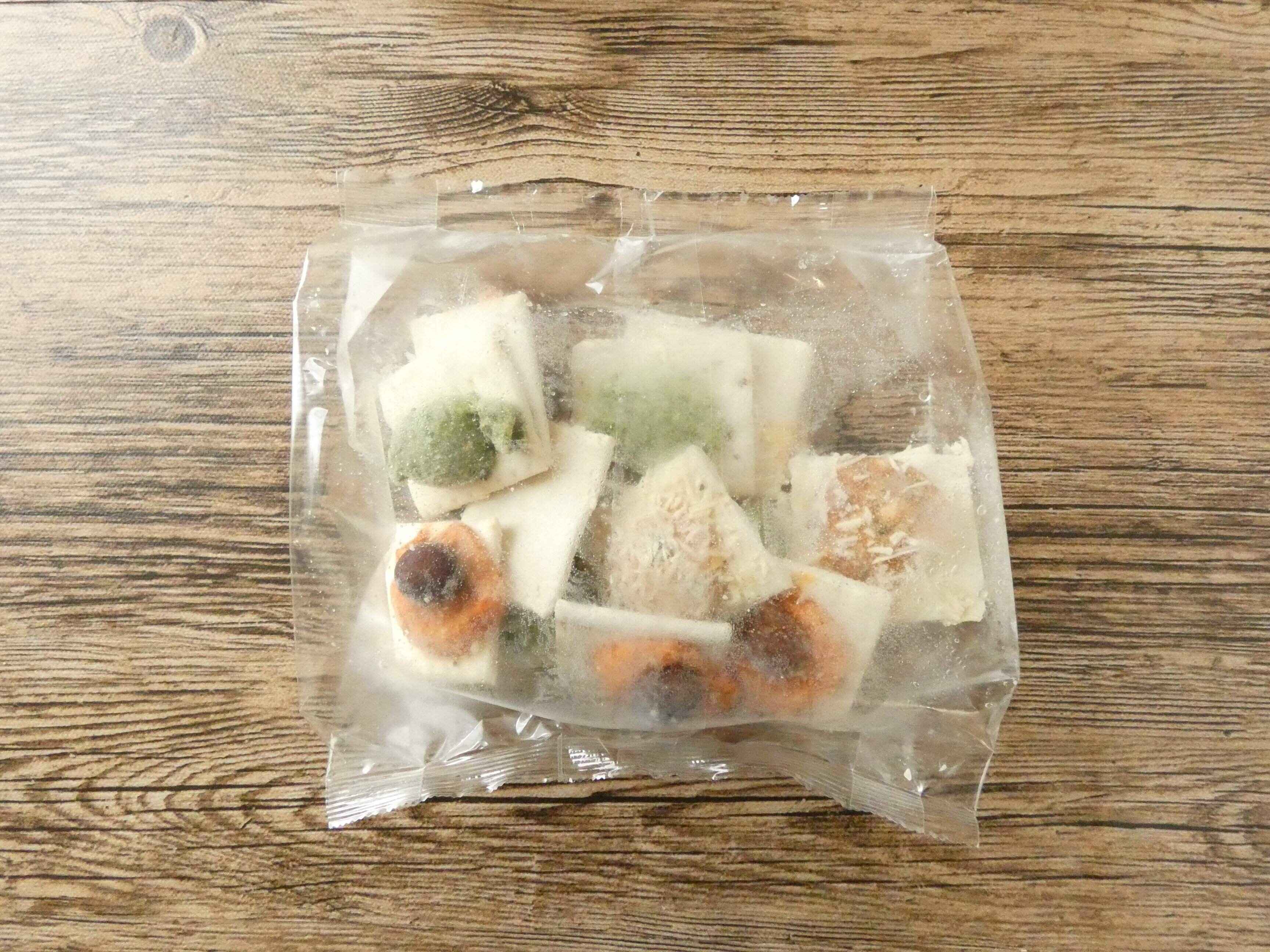 箱を開けると、袋の中には一口サイズのカナッペが12個入っています。
