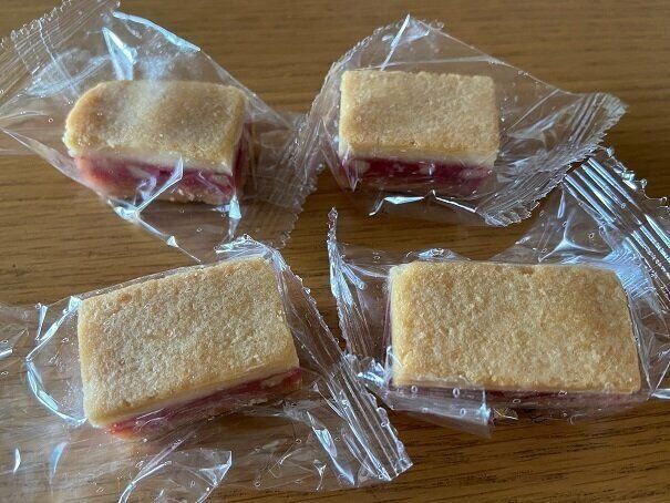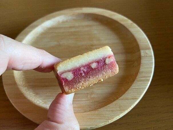 ラズベリーフィリングがサンドされた厚みのあるクッキーです。