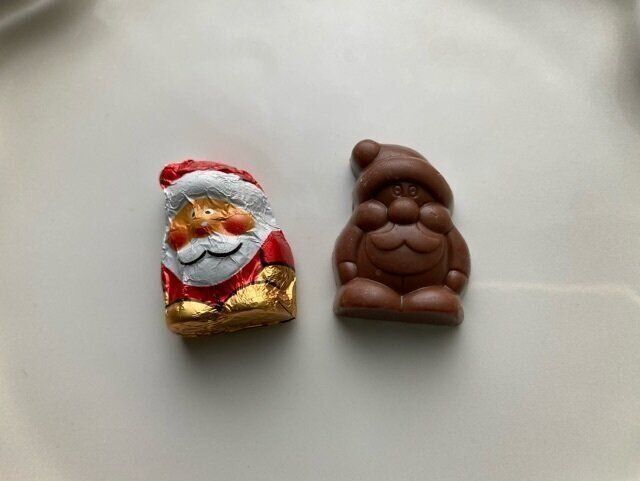 開けてみると、とってもかわいらしいサンタクロースのチョコが出てきました!