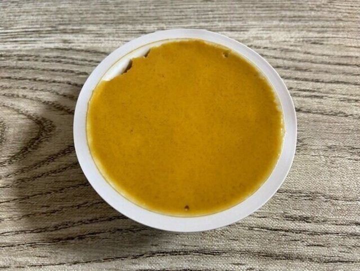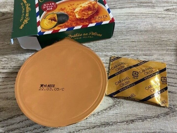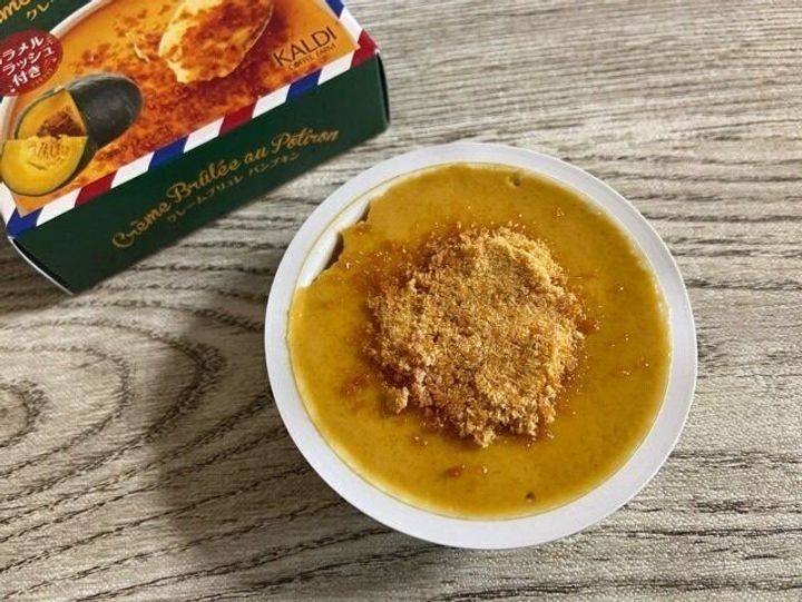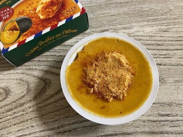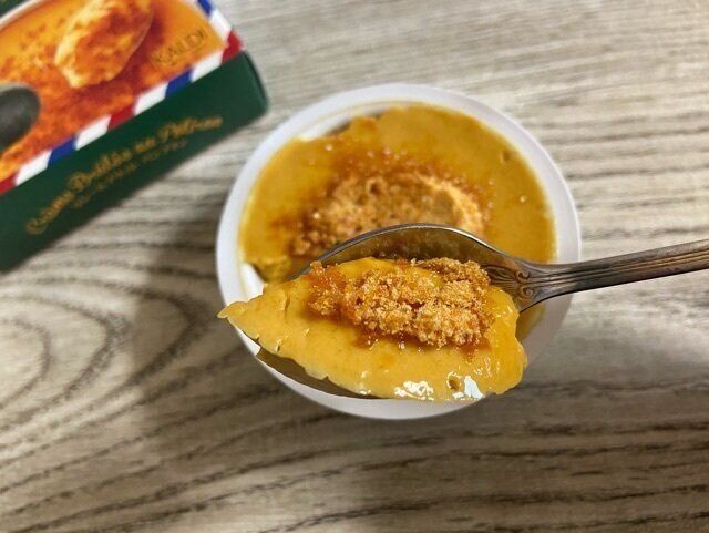 フタをはがすと鮮やかなかぼちゃ色のおいしそうなブリュレ。