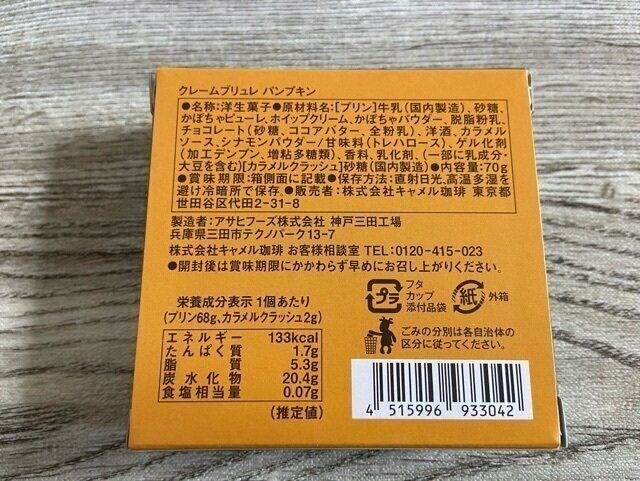 こちらがこの秋より新登場のクレームブリュレパンプキン(購入時:205円)。