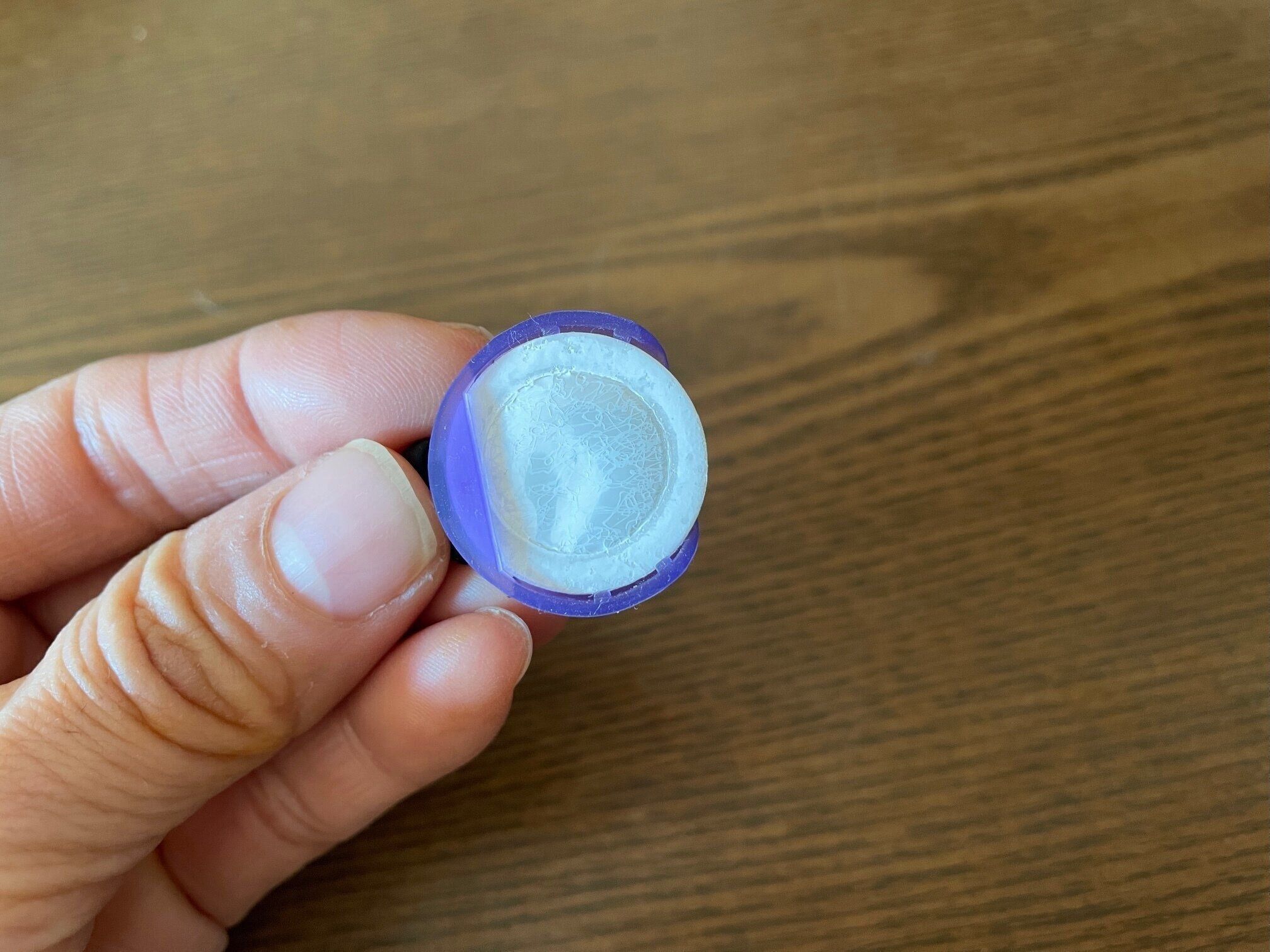 はずは、紫の耳栓本体に、黒いイヤーピースを取り付けます。一度耳に装着してみて、SかMのどちらかピッタリくる方を選んでください。