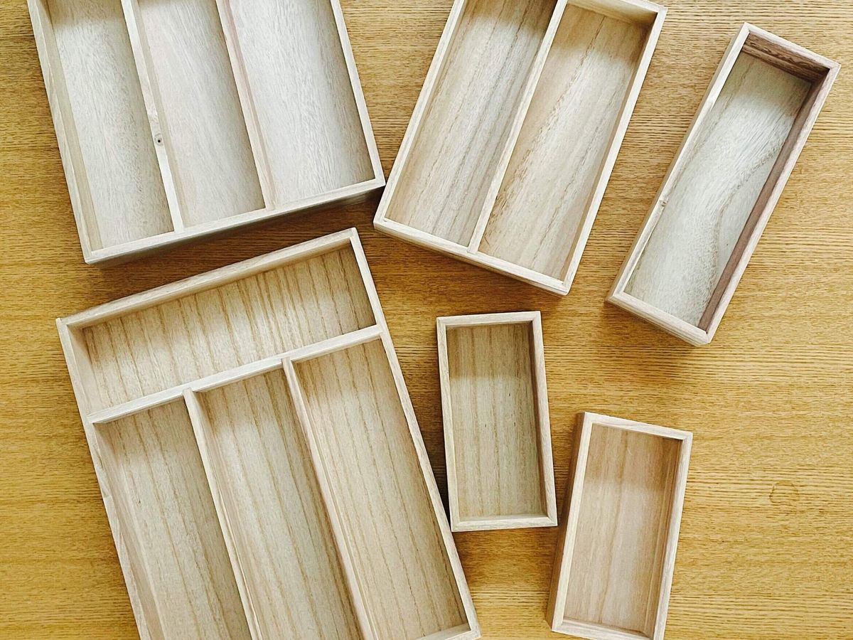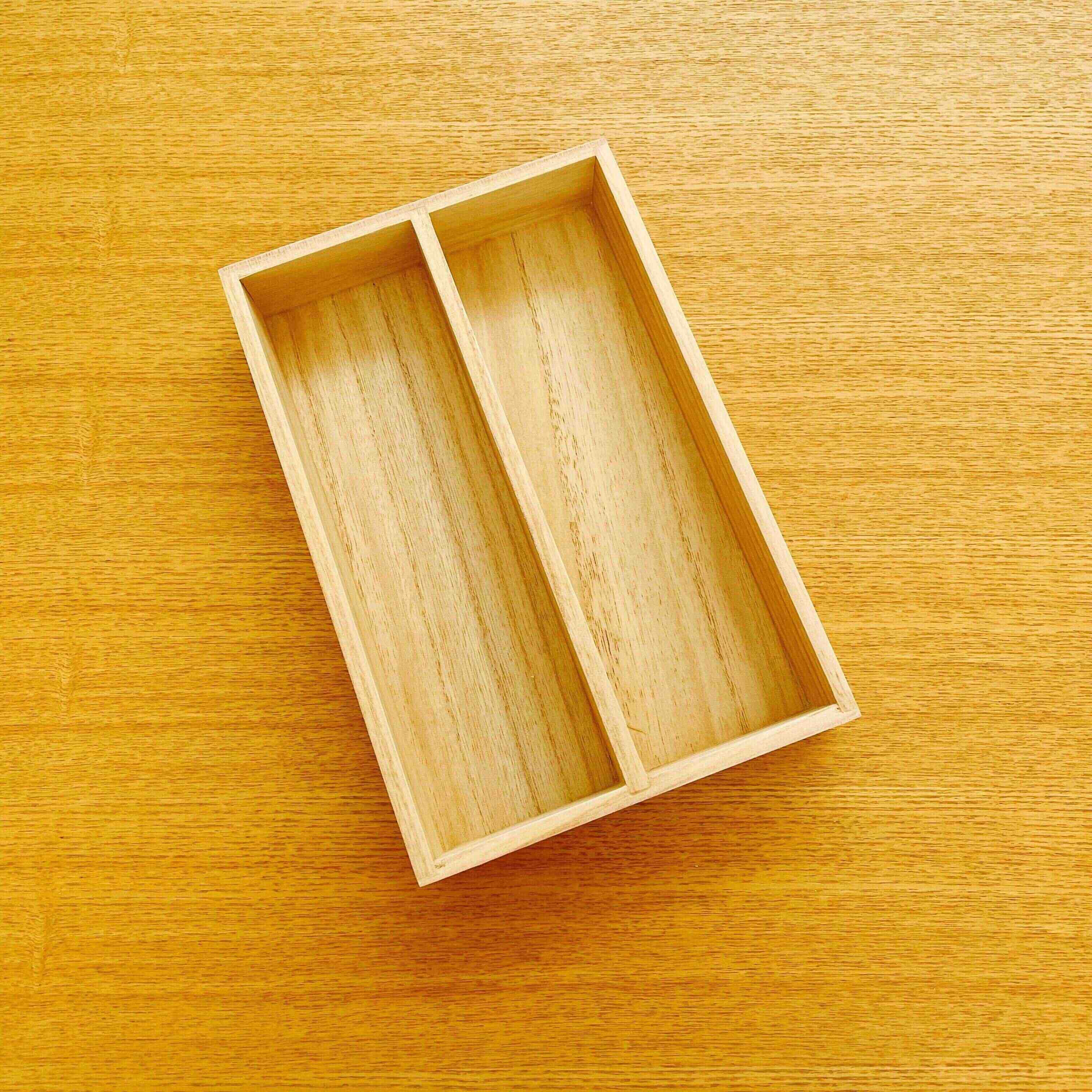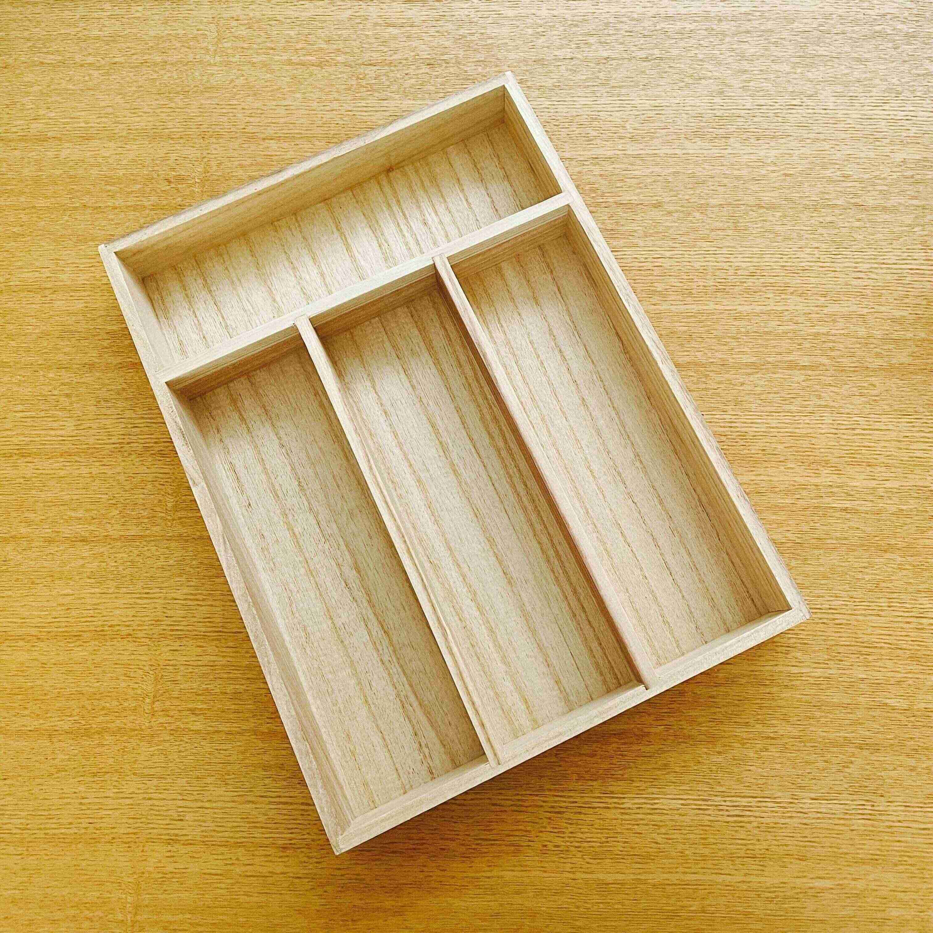 カトラリー収納でよく見かける4分割タイプ。木目がとてもナチュラルで温かな風合いです!