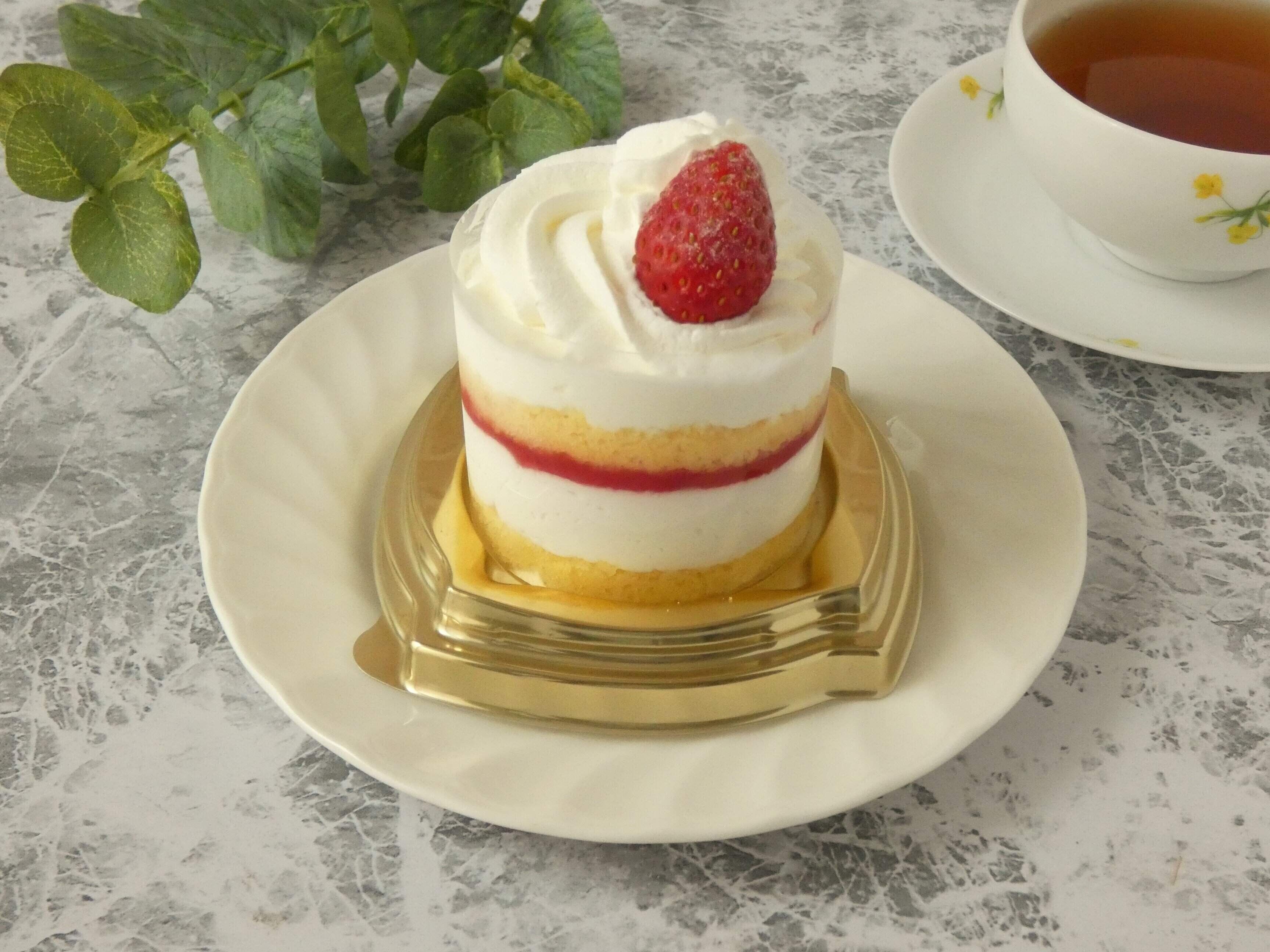 カットしてみると生クリームはふわふわ軽くて、スポンジはしっとりしています。一口食べると生クリームは濃厚でコクがあり、ミルク感たっぷり。苺ソースの甘酸っぱさがぴったりで、飽きずに食べられます。