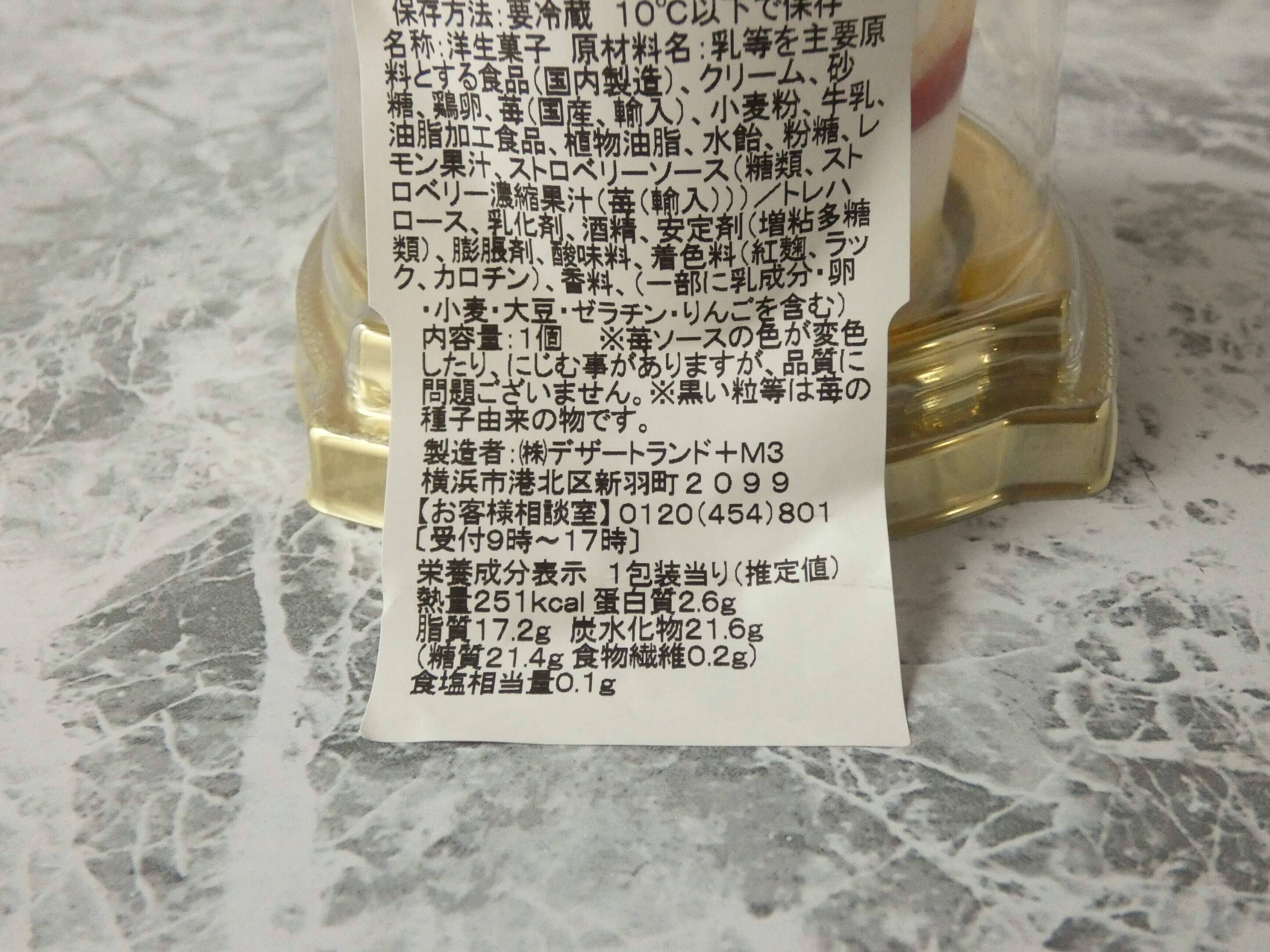 栄養成分表示を見ると1個のエネルギーは251kcal。クリームたっぷりなのでカロリーが高いと思っていましたが、思ったよりも控えめでした。