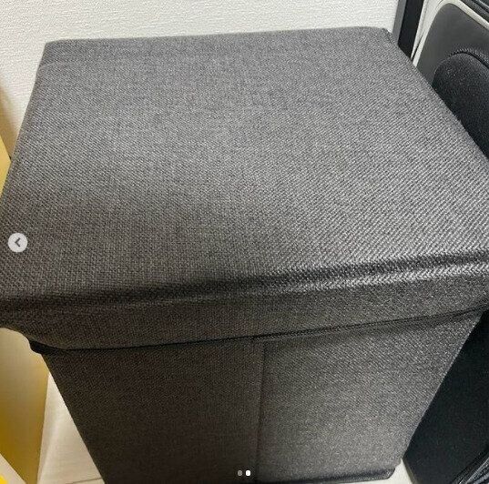 家具と収納が一つになった「収納スツール」550円。椅子として使うことができ、さらにふたを開けると中に物を入れられる仕組みになっています。しっかりした作りで椅子として大人が座っても壊れません。