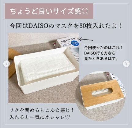 マスクが必需品となっている昨今、大量のマスクを箱買いしている人も多いですよね。こちらのダイソー「竹蓋マスクケース」330円なら、たくさんのマスクをオシャレに収納できますよ。
