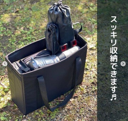 大容量の「キャリングバッグ」550円。底板がついており、たくさんものを入れられます。ノートパソコンや、A4サイズのファイルもすっぽり収納。キャンプ道具を収納するのにもピッタリです。収納量が多く、しっかりしたつくりなので、仕事やアウトドアなどで大活躍!