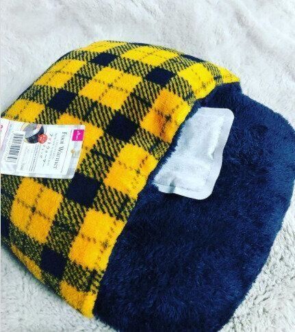 寒い冬は、勉強やデスクワークの際に足元が冷えますよね。そんなときは、こちらの「フットウォーマー」330円はいかがでしょうか。